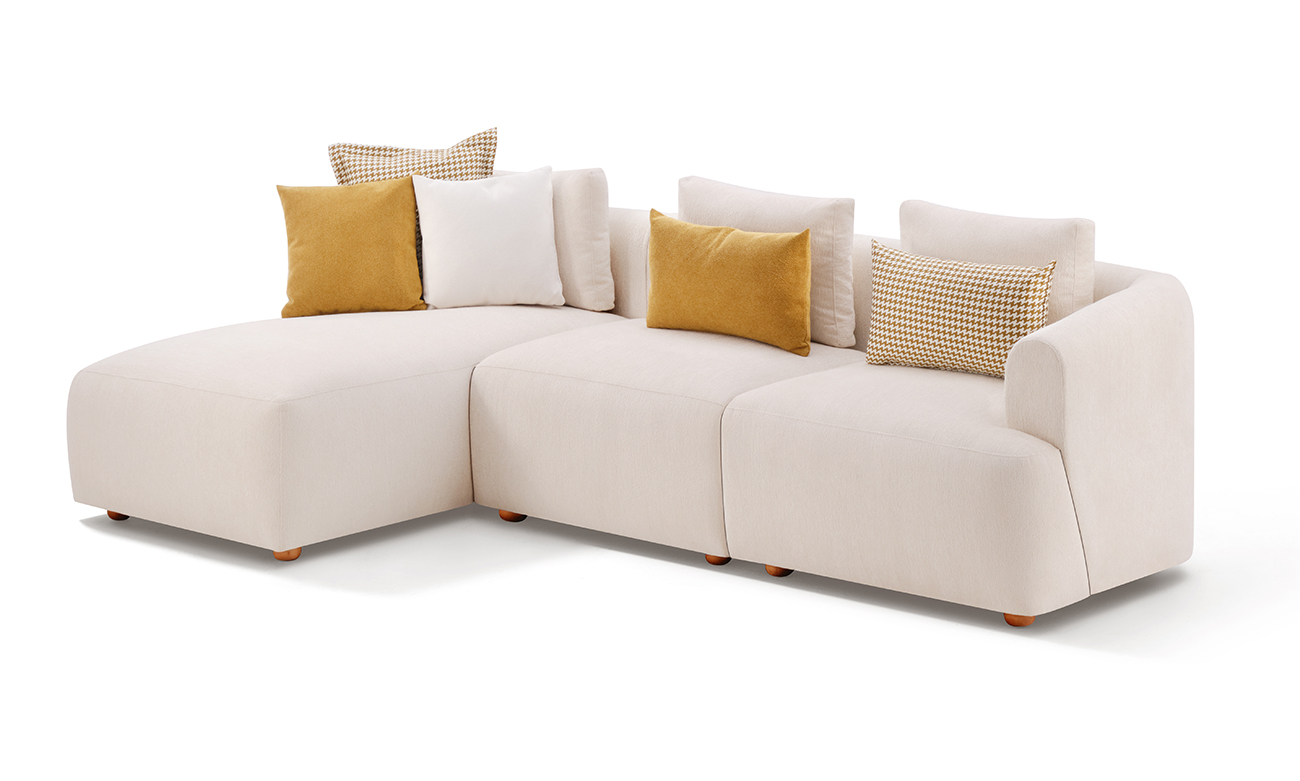 Découvrez le salon en L SOFIE Petit Modèle, une pièce d’ameublement exceptionnelle qui marie à la perfection confort et qualité. Sa structure en bois massif assure une robustesse inégalée, tandis que les sangles élastiques entrecroisées offrent un soutien optimal pour une assise confortable. Le rembourrage en ressorts ensachés, en mousse HR et en mousse de Densité 33 garantit une expérience d’assise enveloppante et moelleuse, vous invitant à vous détendre et à profiter pleinement de vos moments de repos. Chaque détail de ce salon a été pensé pour vous offrir un confort absolu, faisant de SOFIE Petit Modèle l’élément indispensable de votre espace de vie.